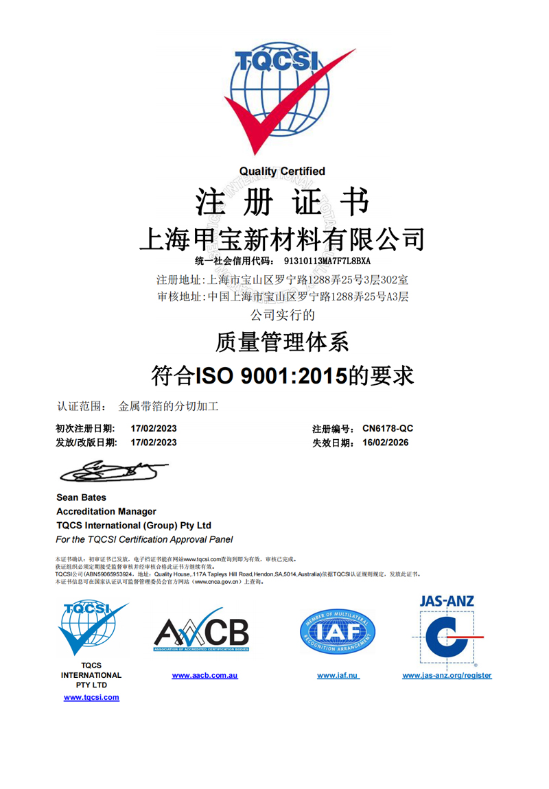 甲寶金屬材料(上海)有限公司主要從事于高精密、高性能、超薄材料的研發(fā)、生產(chǎn)、銷售。致力于新技術(shù)、新材料的研發(fā)和推廣...